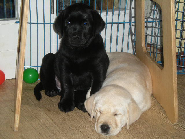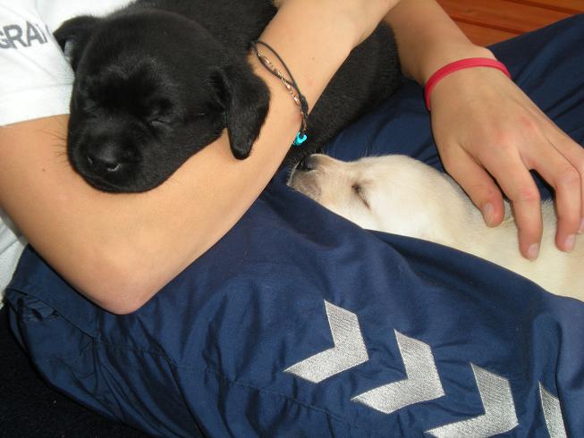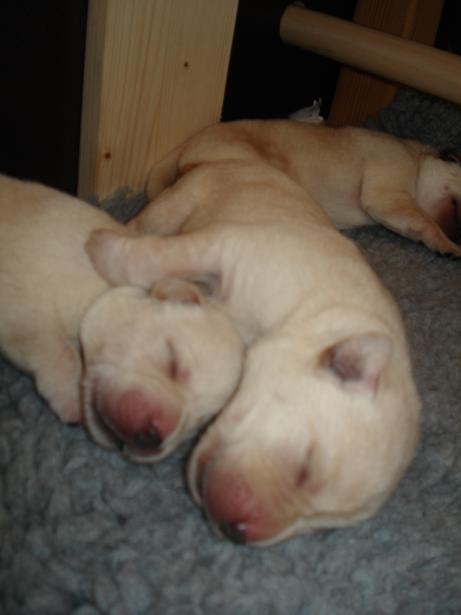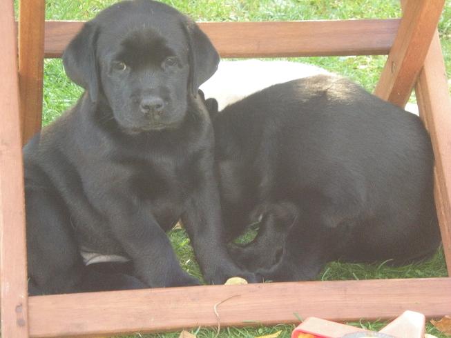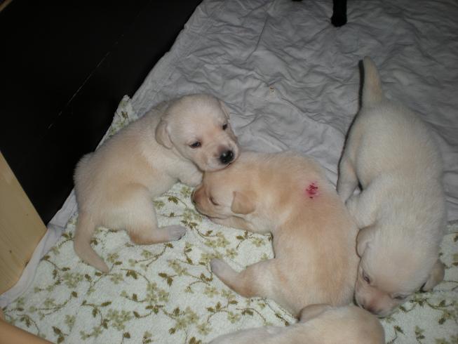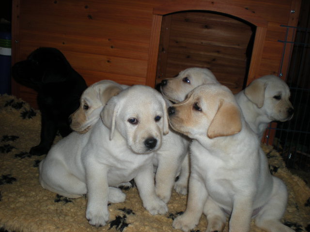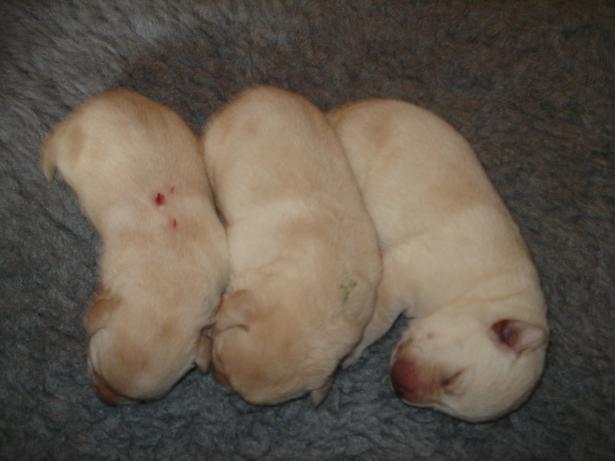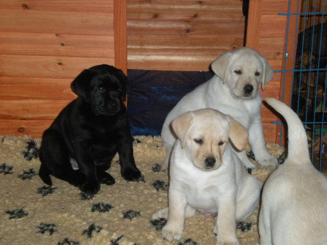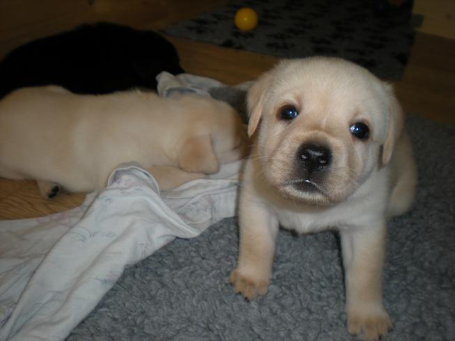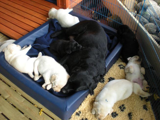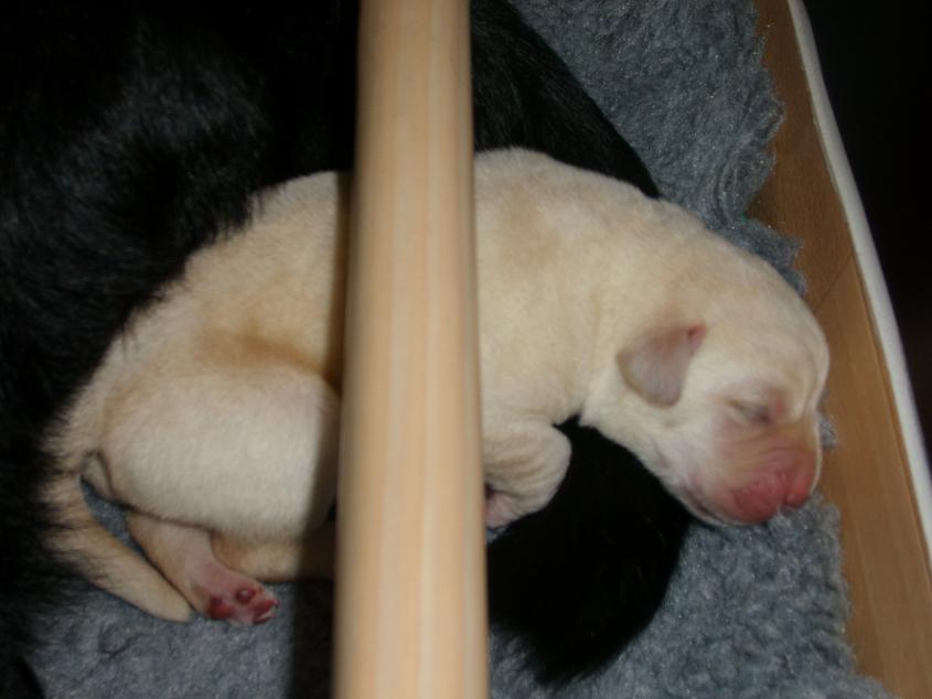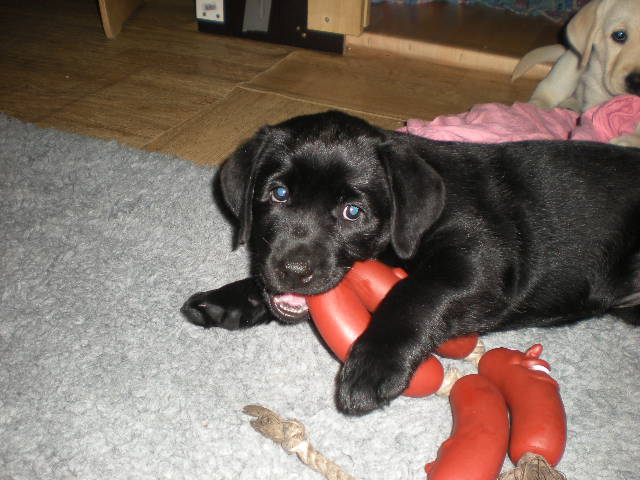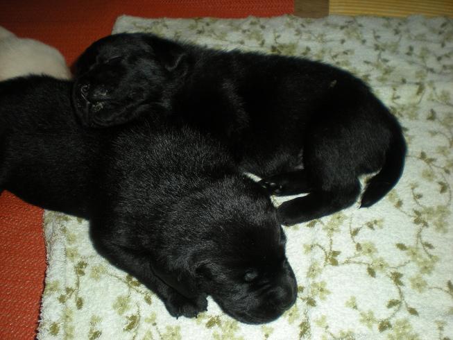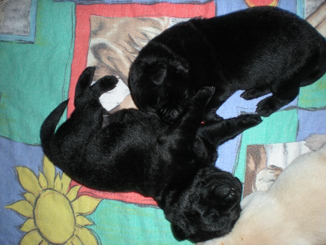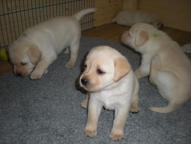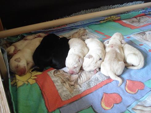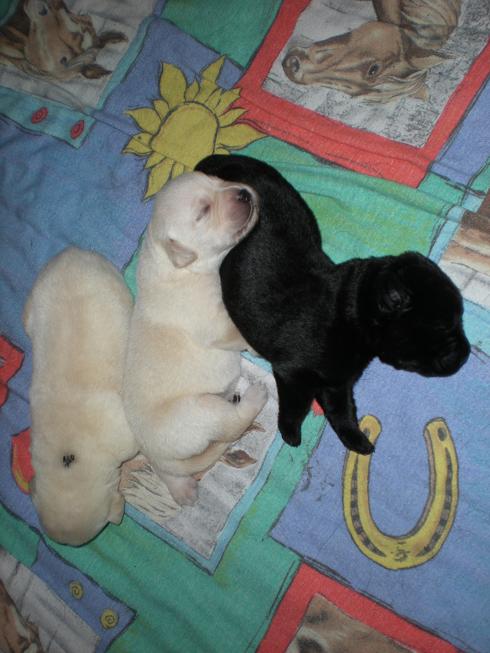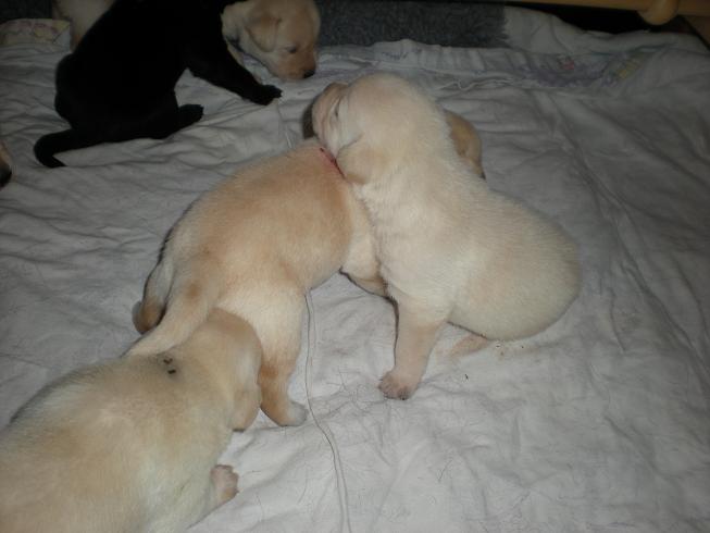 geboren. Es sind 2 schwarze Hündinnen, 2 gelbe Hündinnen und 4 gelbe Rüden.
