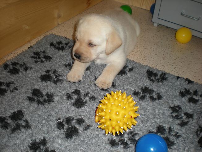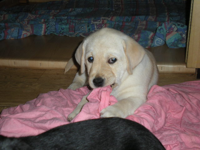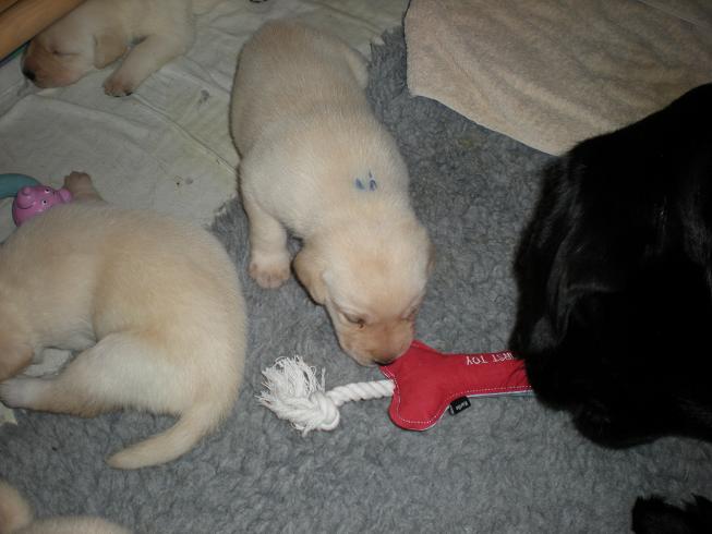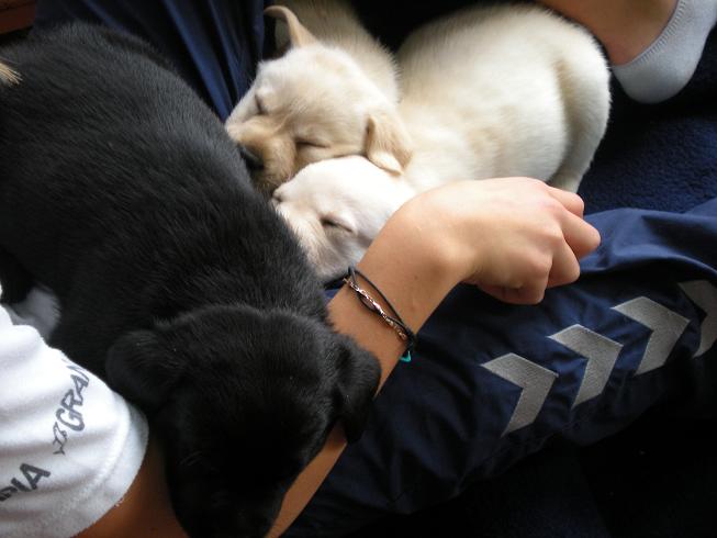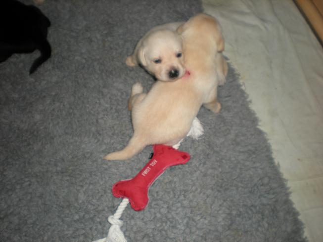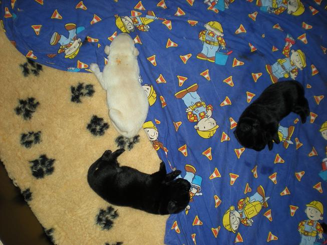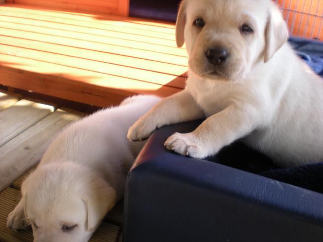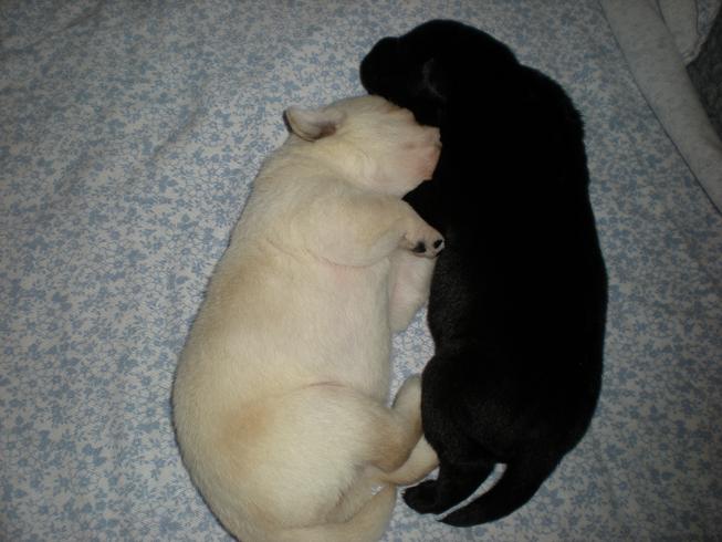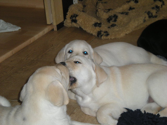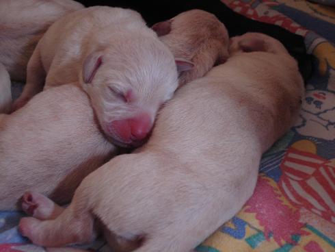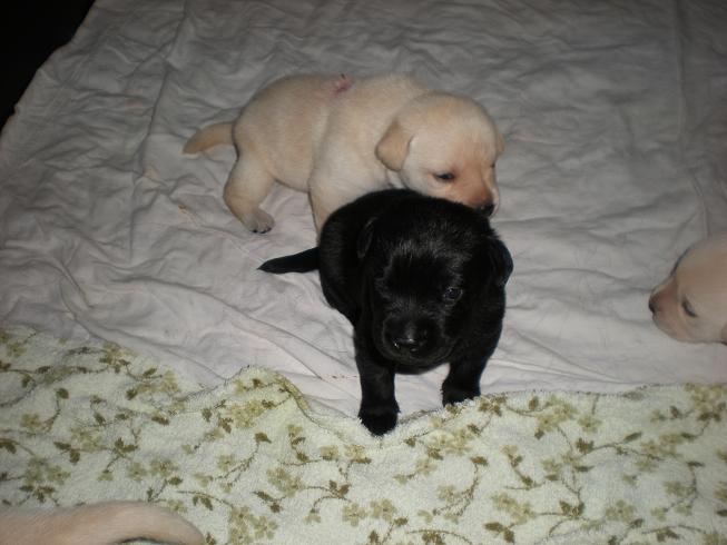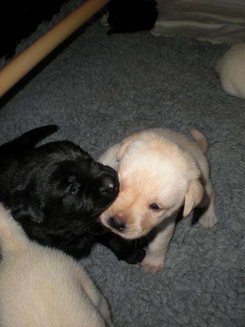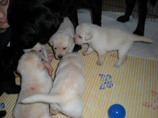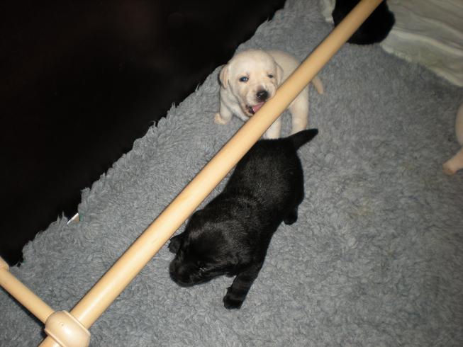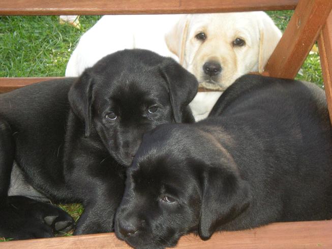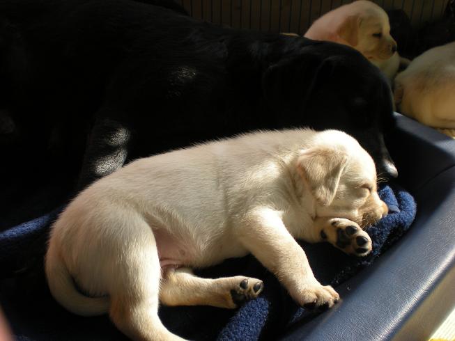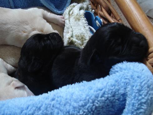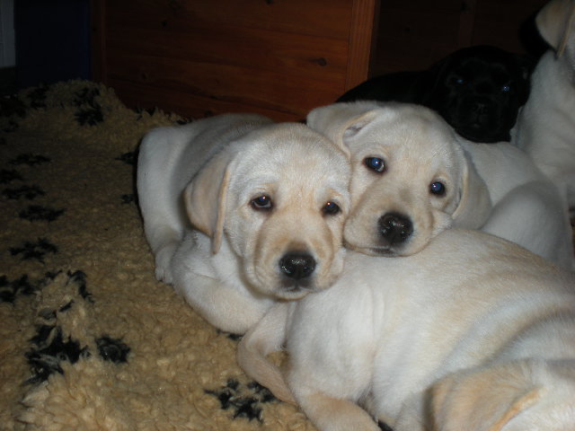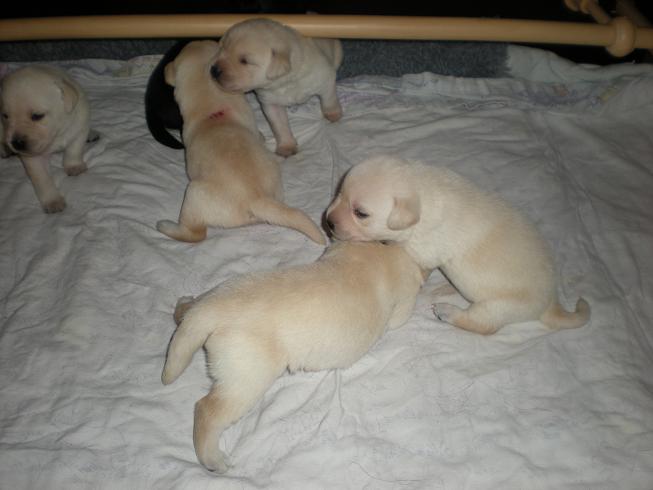 geboren. Es sind 2 schwarze Hündinnen, 2 gelbe Hündinnen und 4 gelbe Rüden.