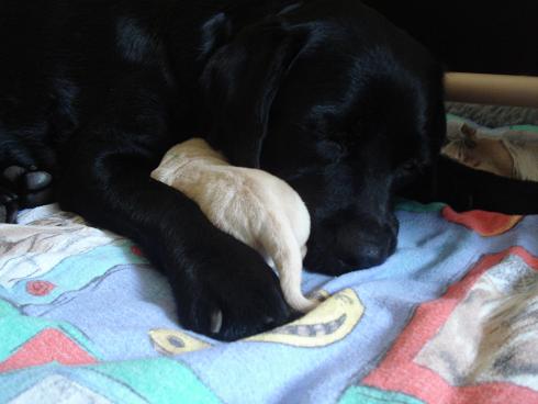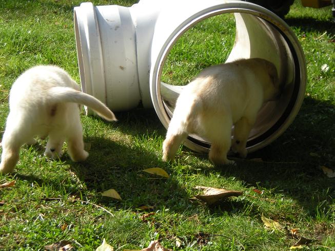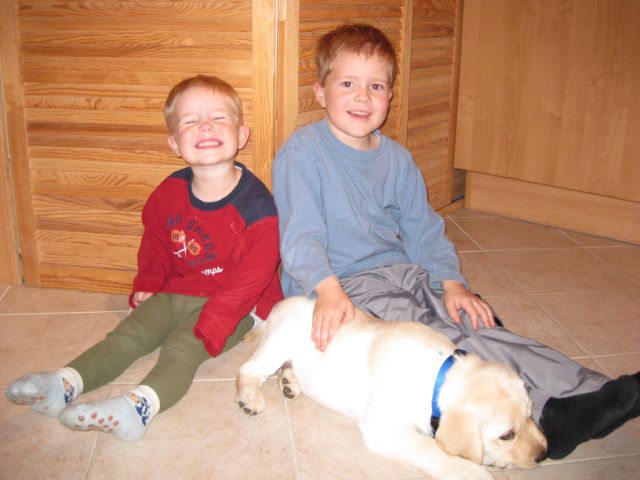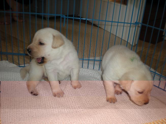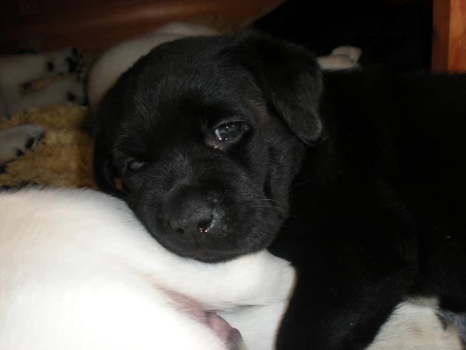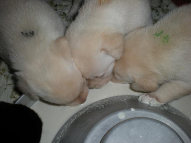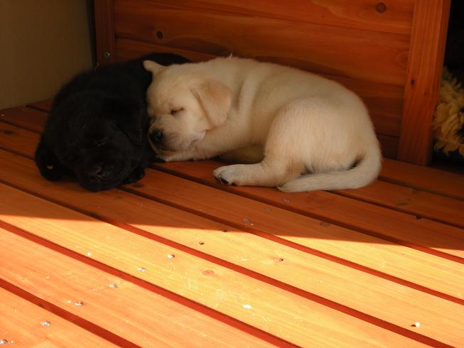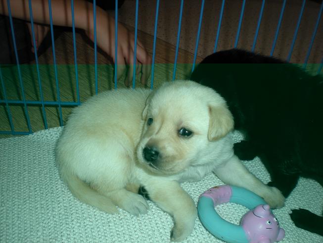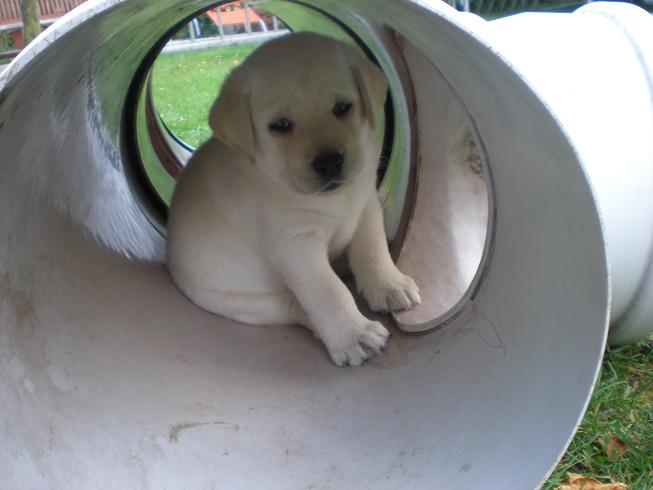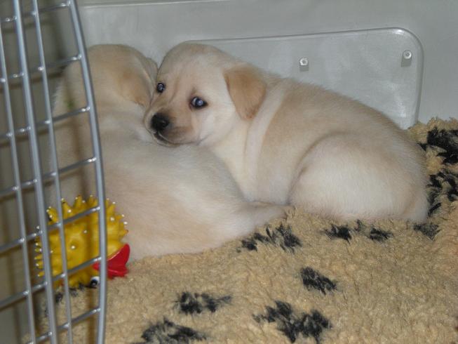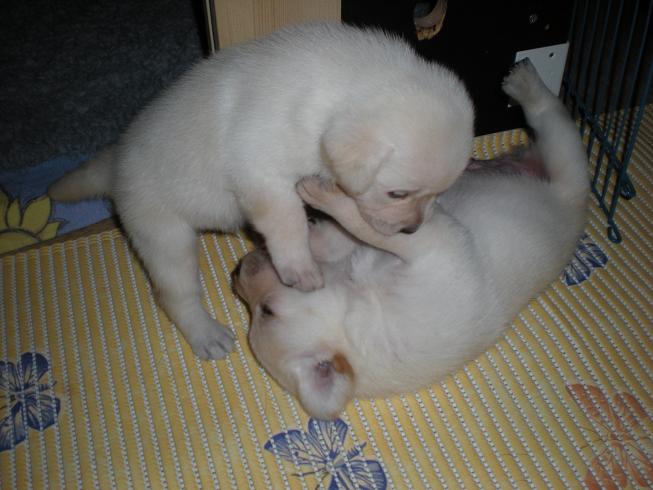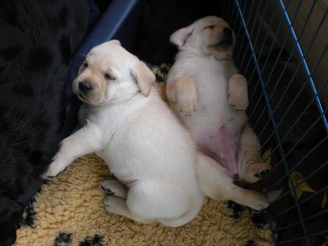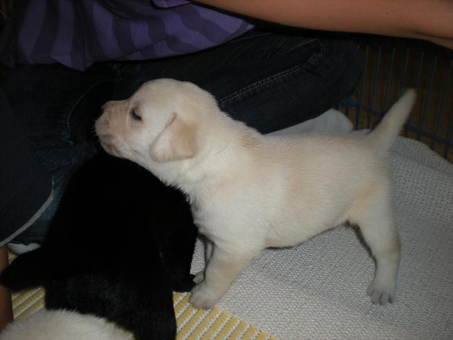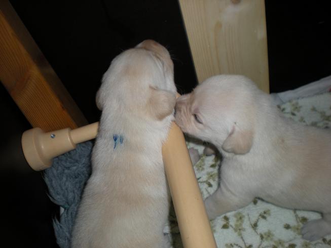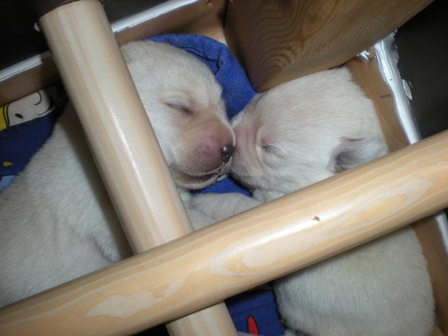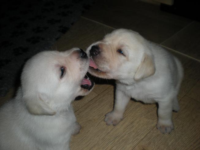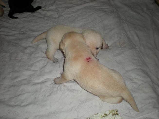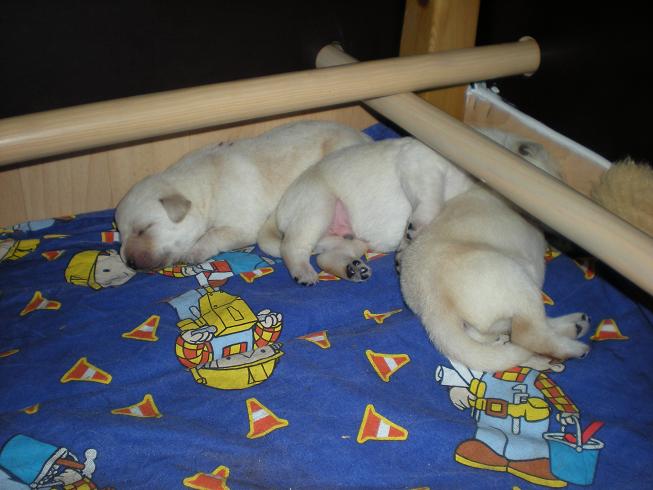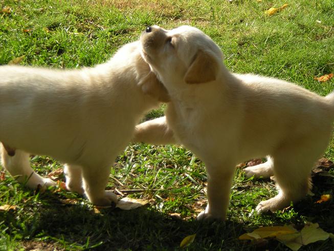 geboren. Es sind 2 schwarze Hündinnen, 2 gelbe Hündinnen und 4 gelbe Rüden.